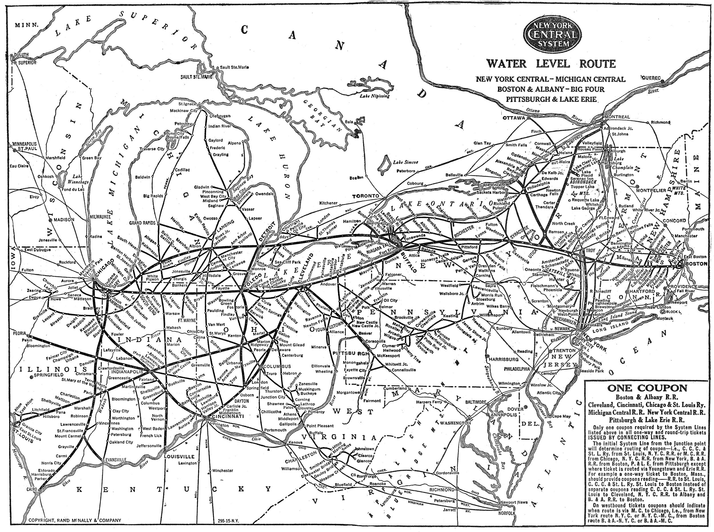 An official, 1940 system map of the New York Central Railroad. Credit to American Rails